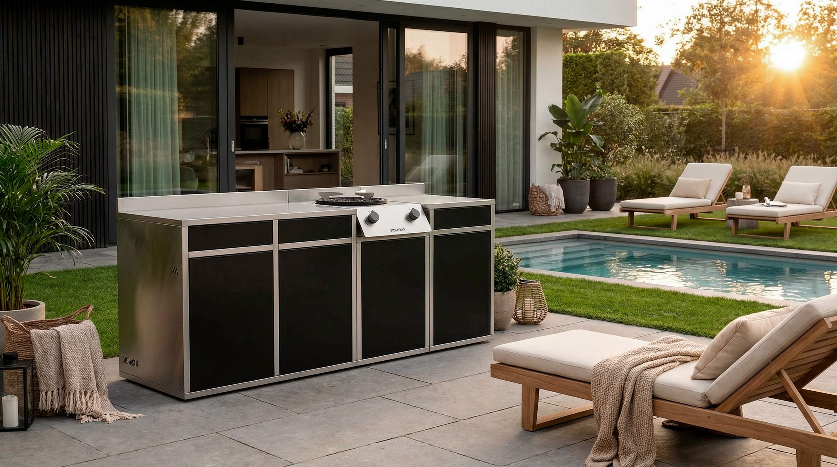 Acero inoxidable, líneas limpias y proporciones precisas: no solo cocinas mejor, sino que tu cocina exterior se transforma en un lugar que inspira y ordena.