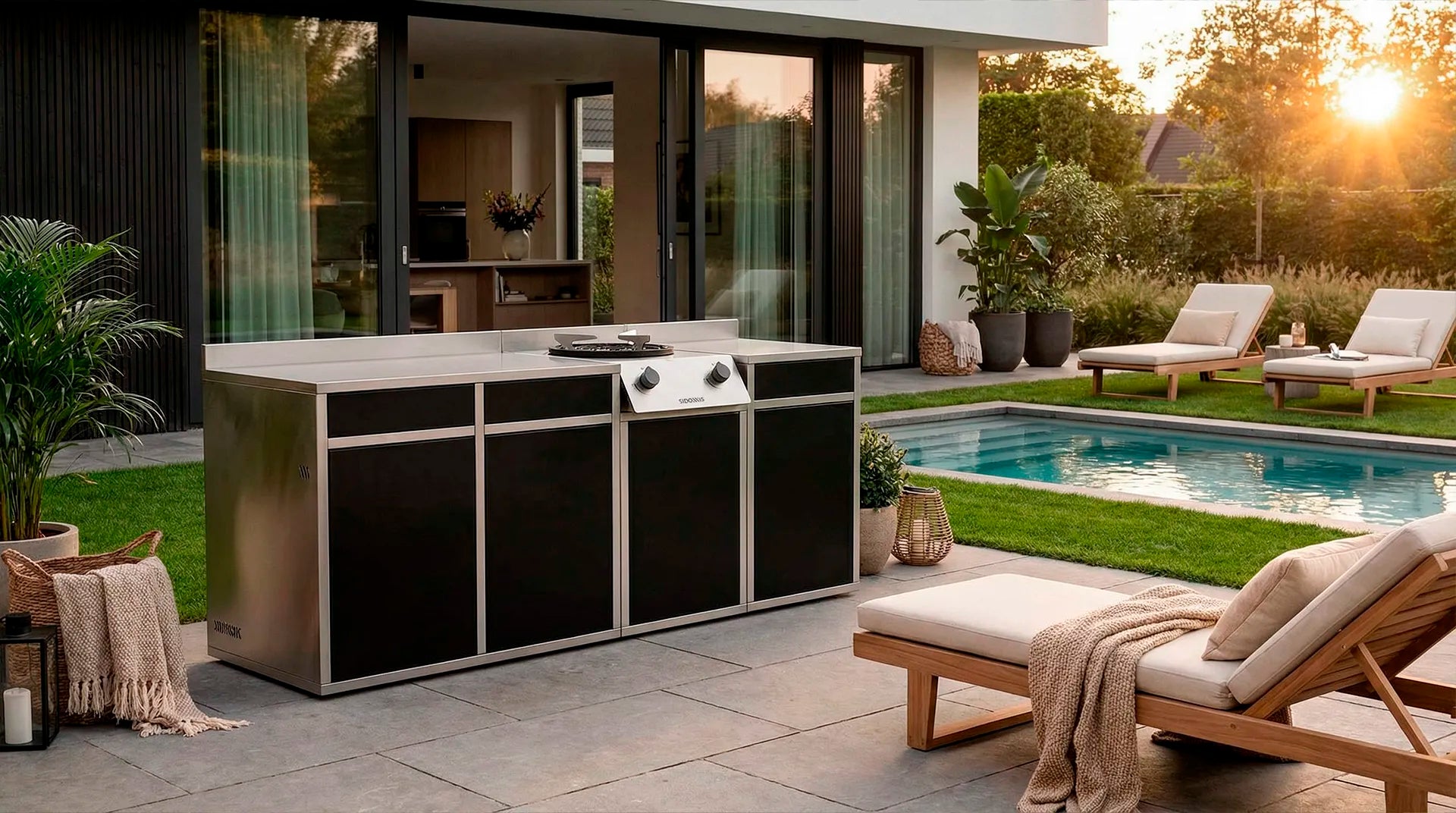 Acier inoxydable, lignes épurées et proportions précises : non seulement vous cuisinez mieux, mais votre cuisine extérieure se transforme en un lieu inspirant et organisé.